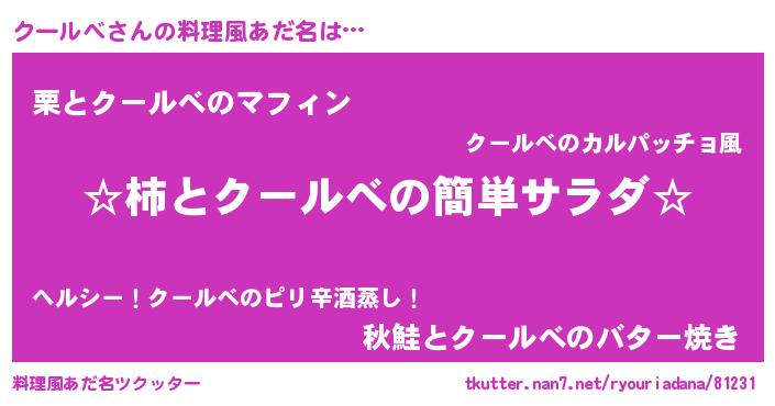 | 意味不明あだ名 | 『永久保存クールべ』『自称クールべ』 |