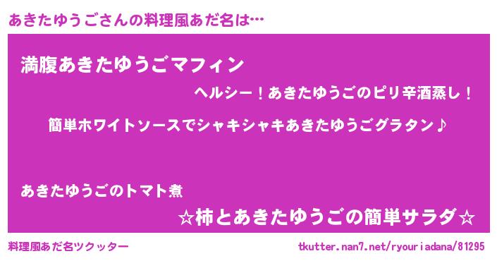 | ヘコむあだ名 | 『あきっ子』『あきたゆうご(爆)』 |