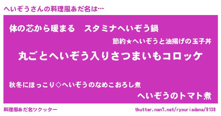 | 意味不明あだ名 | 『住所不定無職へいぞう(59歳)』 |