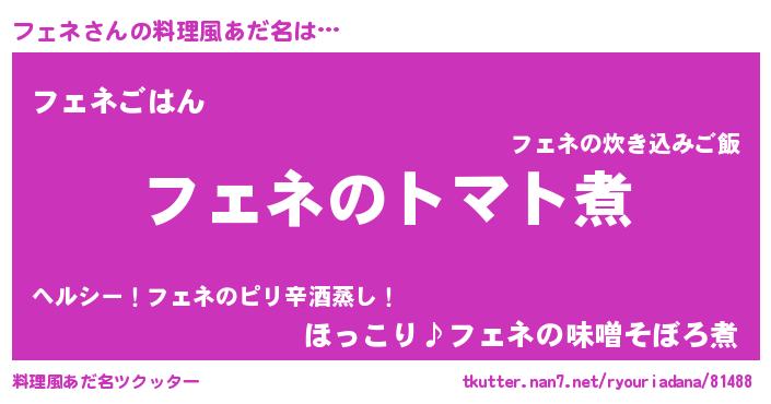 | 女子向けラノベタイトル風あだ名 | 『フェネ夫妻のなれそめ』『闇のフェネ』 |