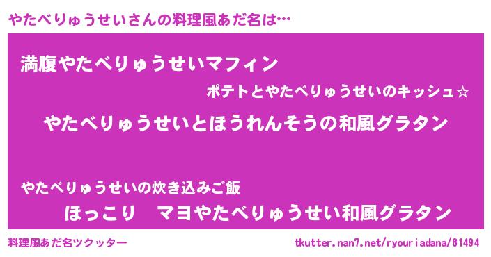 | 可愛いあだ名 | 『やたぷりん』『やたべりゅうせいママ』 |