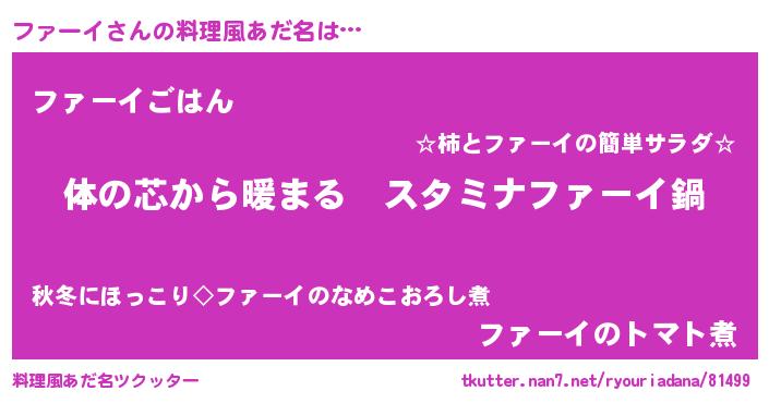 | 女子向けラノベタイトル風あだ名 | 『ファーイの雑貨屋さん』 |