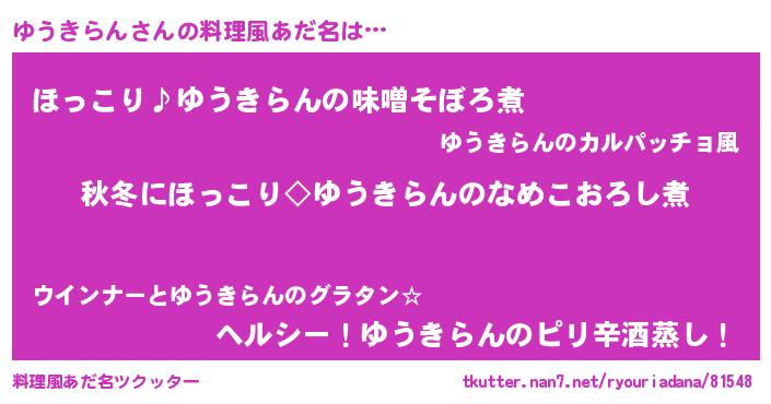 | 意味不明あだ名 | 『ペロリンゆうきらん』『自称ゆうきらん』 |