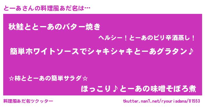 | 女子向けラノベタイトル風あだ名 | 『とーあ様がみてる』『とーあの契約王妃』 |