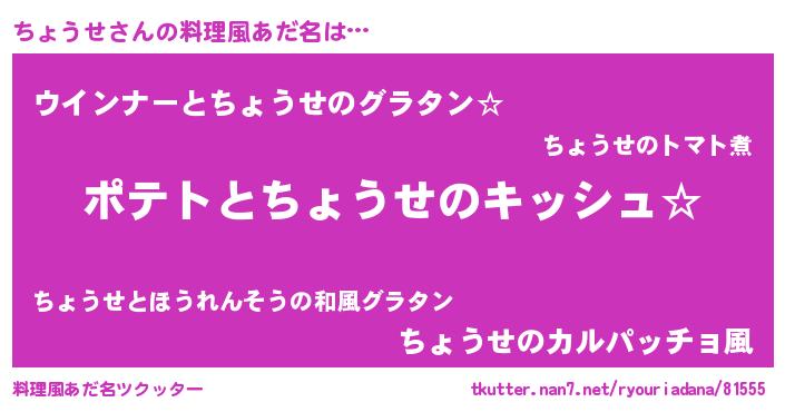 | ヘコむあだ名 | 『ちょぷりん』『牛乳』『ちょもー』 |