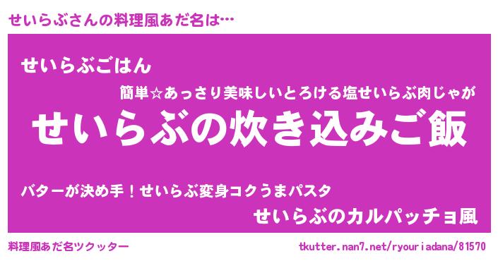 | ヘコむあだ名 | 『せいらぶ(爆)』『せいっちょ』 |