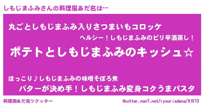 | 意味不明あだ名 | 『とにかく怪しいしもじまふみ』 |