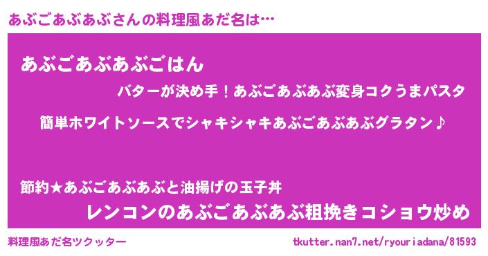 | 男性向けラノベタイトル風あだ名 | 『あぶごあぶあぶの嫁は女の子じゃないと思った?』 |