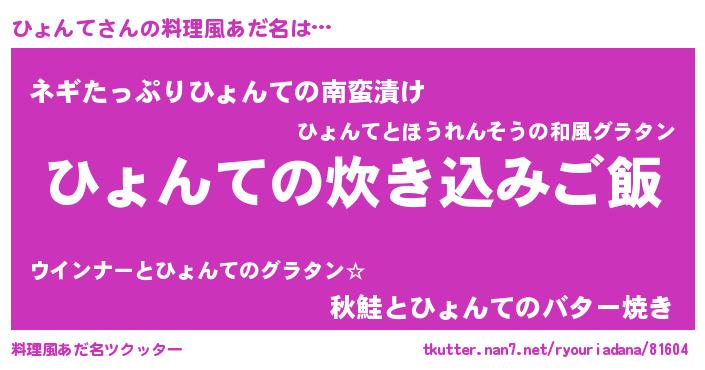 | 意味不明あだ名 | 『ペロリンひょんて』『永久保存ひょんて』 |