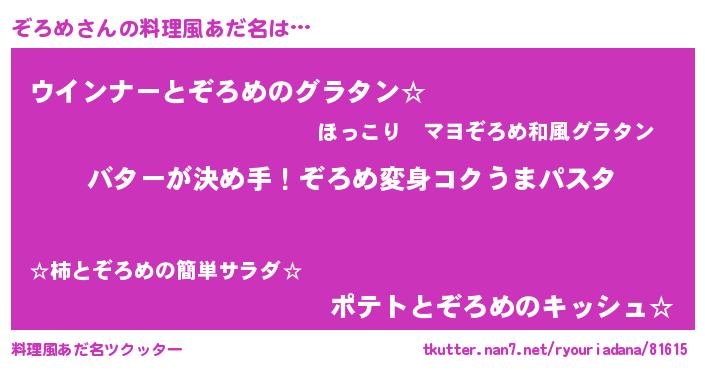 | ポケモン風あだ名 | 『ゾックウザ』『ゾロメダネ』 |