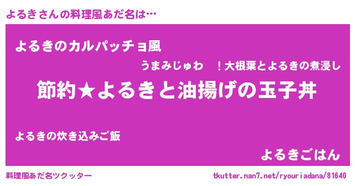 | ヘコむあだ名 | 『よるっふぃ~』『なまこ酢』 |