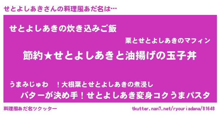 | ヘコむあだ名 | 『せとふぇ~』『なまこ酢』 |