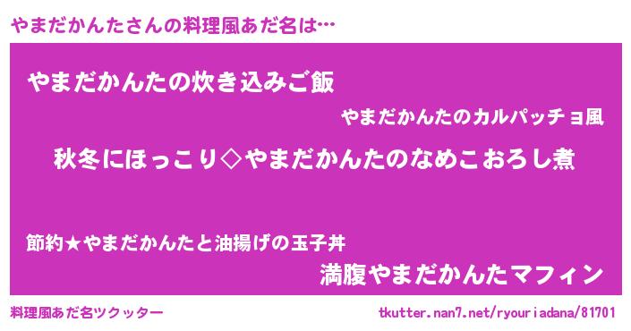 | ヘコむあだ名 | 『やまだかんた(苦笑)』『やまにー』 |