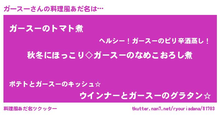 | ヘコむあだ名 | 『酢こんぶ』『ガーを』『ガーにゅー』 |