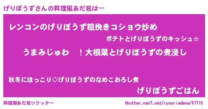 | ファンタジー風あだ名 | 『エターナルゲリボウズー』『ゼゲリトゥ』 |