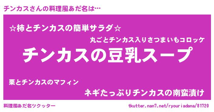 | 胡散臭い通販商品みたいなあだ名 | 『信頼と実績のサプリメント…その名も「チンカス」』 |