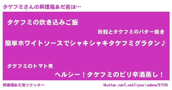 | 女子向けラノベタイトル風あだ名 | 『タケフミ様がみてる』 |