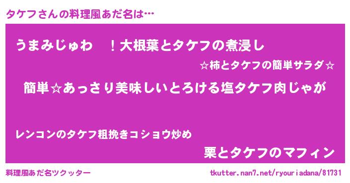 | ヘコむあだ名 | 『タケフ(爆)』『酢こんぶ』 |