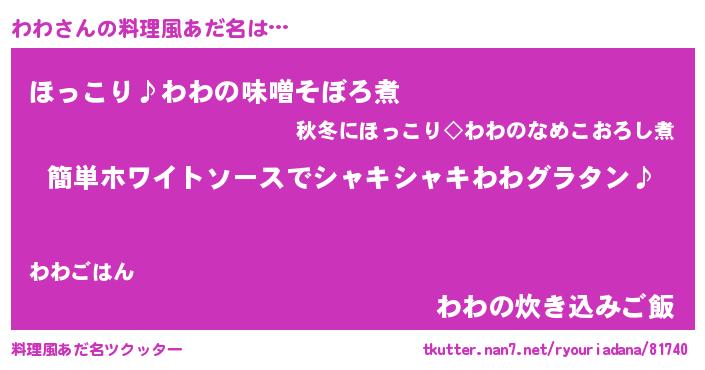 ポケモン風あだ名 | 『ヒワワ』『ワワチュウ』『ワワゴンZ』 |