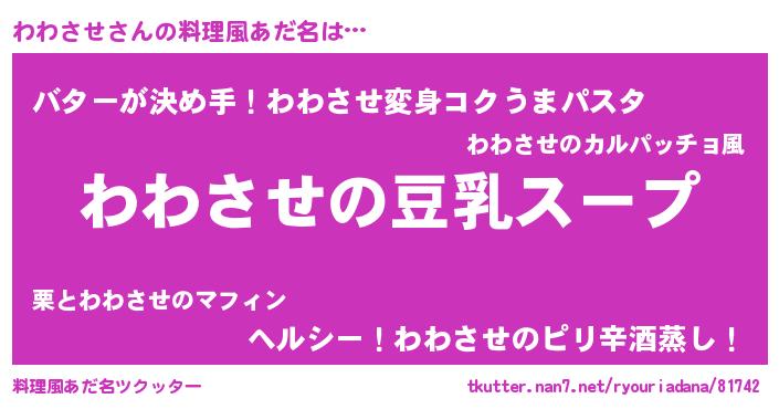 | ヘコむあだ名 | 『わわっぺ』『わわさせ(笑)』『牛乳』 |