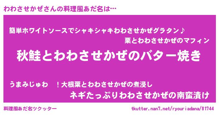 | 胡散臭い通販商品みたいなあだ名 | 『来世でも幸せになれる健康食品…その名も「わわさせかぜ」』 |