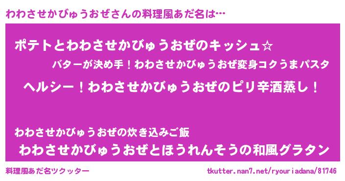 | 男性向けラノベタイトル風あだ名 | 『Re:わわさせかびゅうおぜから始める異世界生活』 |
