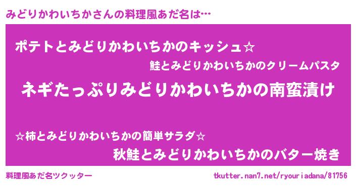 | 欧米人風あだ名 | 『マイケルみどりかわいちか』 |