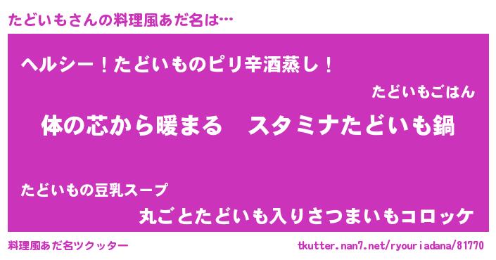 | ピコ太郎風あだ名 | 『ピタ次郎』『タド二郎』『タコ三郎』 |