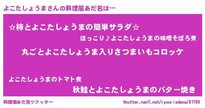 | 意味不明あだ名 | 『住所不定無職よこたしょうま(1歳)』 |