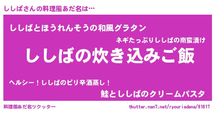 | ヘコむあだ名 | 『ししにー』『ししば(笑)』『ししを』 |