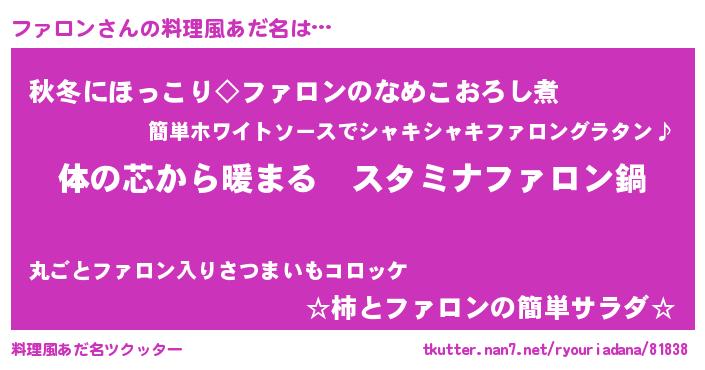 | ヘコむあだ名 | 『つくし』『ファお』『ファにー』 |