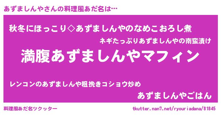| 意味不明あだ名 | 『永久保存あずましんや』 |