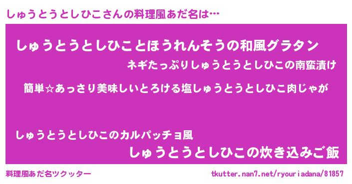 | ヘコむあだ名 | 『しゅうとうとしひこ(爆)』『しゅにー』 |