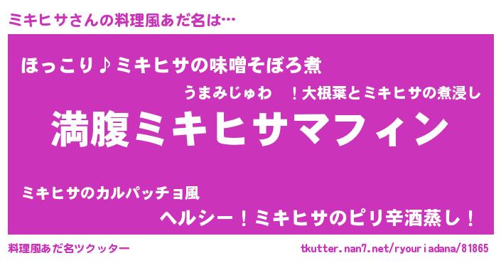 | ヘコむあだ名 | 『ミキヒサ(遠い目)』『ミキっふぃ~』 |