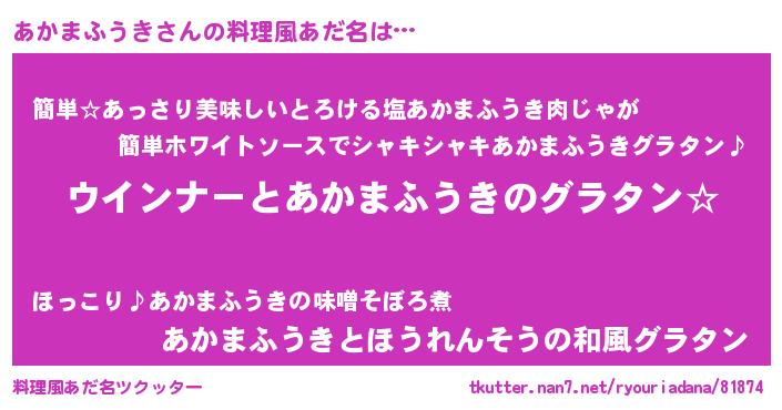 | ヘコむあだ名 | 『豆乳』『あかまふうき(爆)』 |