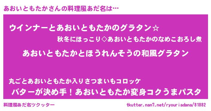| ヘコむあだ名 | 『酢こんぶ』『あおいともたか(小並感)』 |