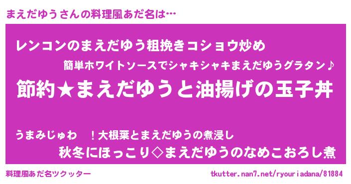 | ヒーロー風カッコイイあだ名 | 『スーパーマエダユウ』『銀牙騎士マエ』 |