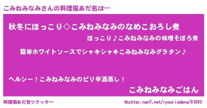 | ヘコむあだ名 | 『こみぷりん』『こみっふぃ~』 |