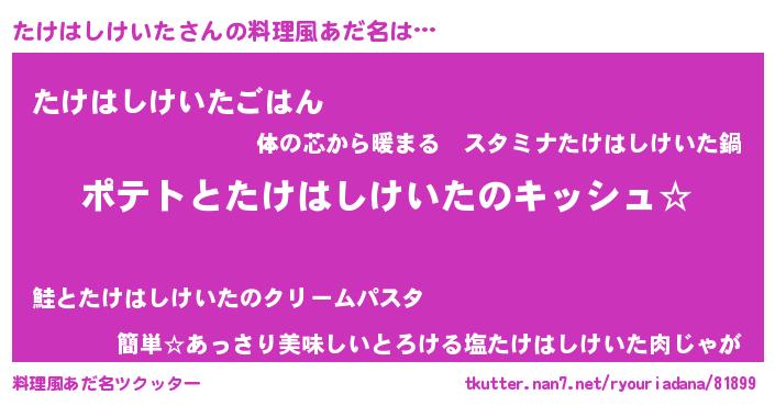 | ポケモン風あだ名 | 『ヒタケハシケイタ』『タケキング』 |