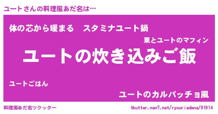| ポケモン風あだ名 | 『メロユッー』『ユートダネ』 |