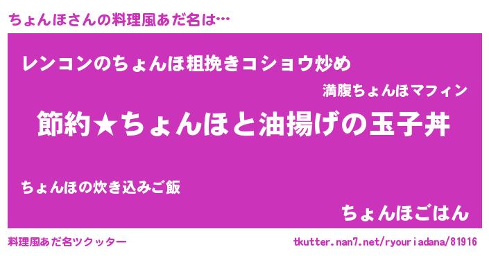 | ヘコむあだ名 | 『ちょにゅー』『ちょんほ(笑)』 |
