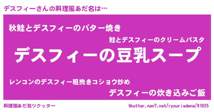 | 胡散臭い通販商品みたいなあだ名 | 『信頼と実績のサプリメント…その名も「デスフィー」』 |