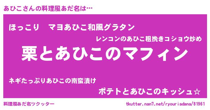 | ヒーロー風カッコイイあだ名 | 『仮面アヒダー』『天弓騎士アヒ』 |