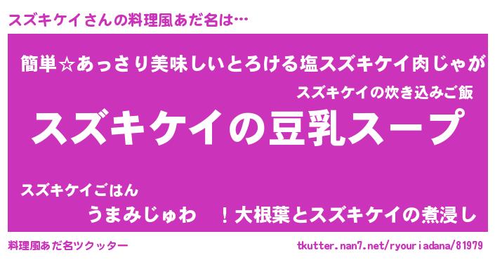 | ポケモン風あだ名 | 『ヒスズキケイ』『ゼニスズ』 |