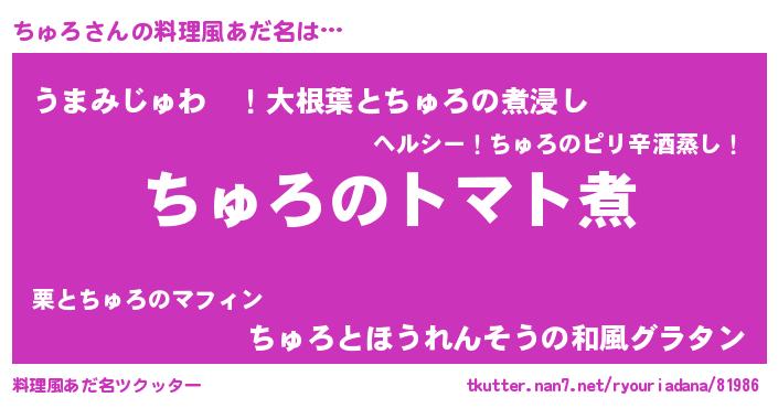 | 意味不明あだ名 | 『眠気覚ましガムちゅろ味』『自称ちゅろ』 |