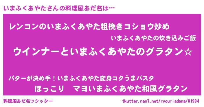 | 欧米人風あだ名 | 『いまふくあやたクリステル』 |