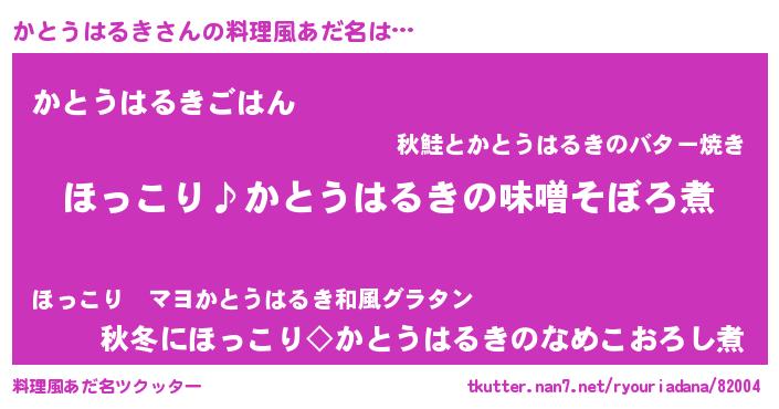 | ヘコむあだ名 | 『かとふぇ~』『かとうはるき(遠い目)』 |