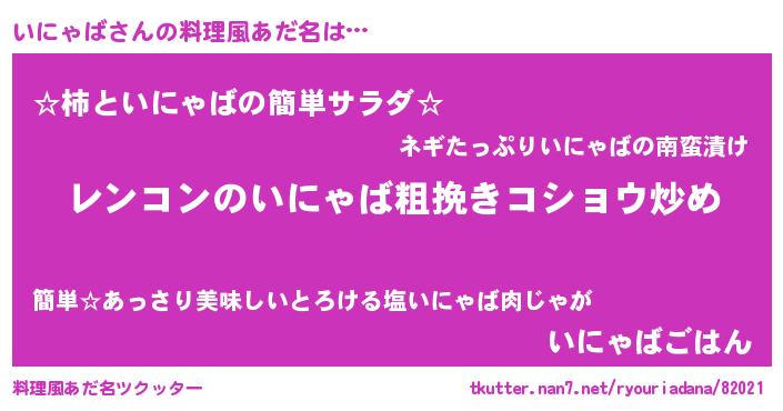 | 意味不明あだ名 | 『自称いにゃば』『めかぶ科いにゃば属』 |