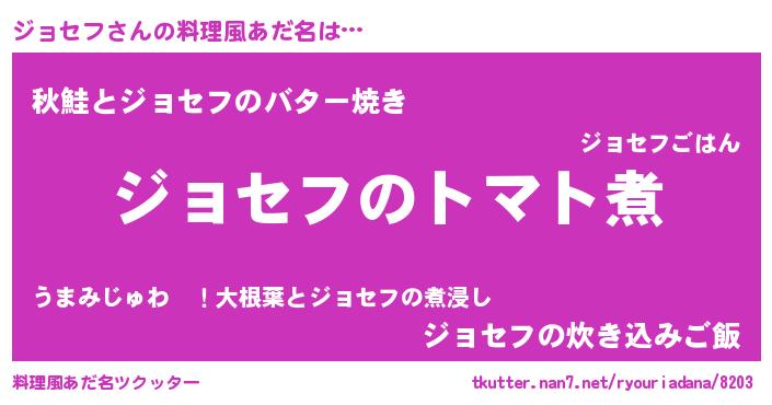 | 男性向けラノベタイトル風あだ名 | 『おまえをオタクにしてやるから、俺をジョセフにしてくれ! 』 |
