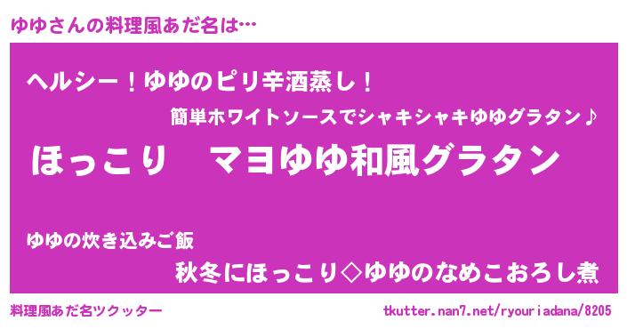 | ヘコむあだ名 | 『ゆゆっちょ』『ゆゆ(爆)』『豆乳』 |